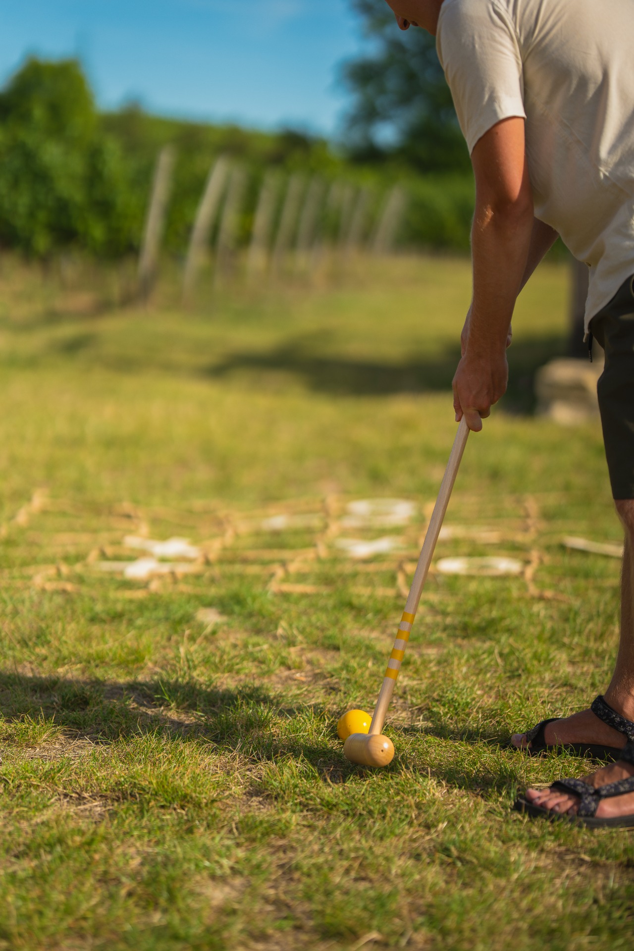 Představujeme Piškroket zábavnou venkovní hru, která vznikla spojením piškvorek a kroketu. Vezmete kladivo, odpálíte míček a tam, kde se zastaví, položíte svůj křížek nebo kolečko. Jednoduchý princip, ale spousta smíchu a napětí.