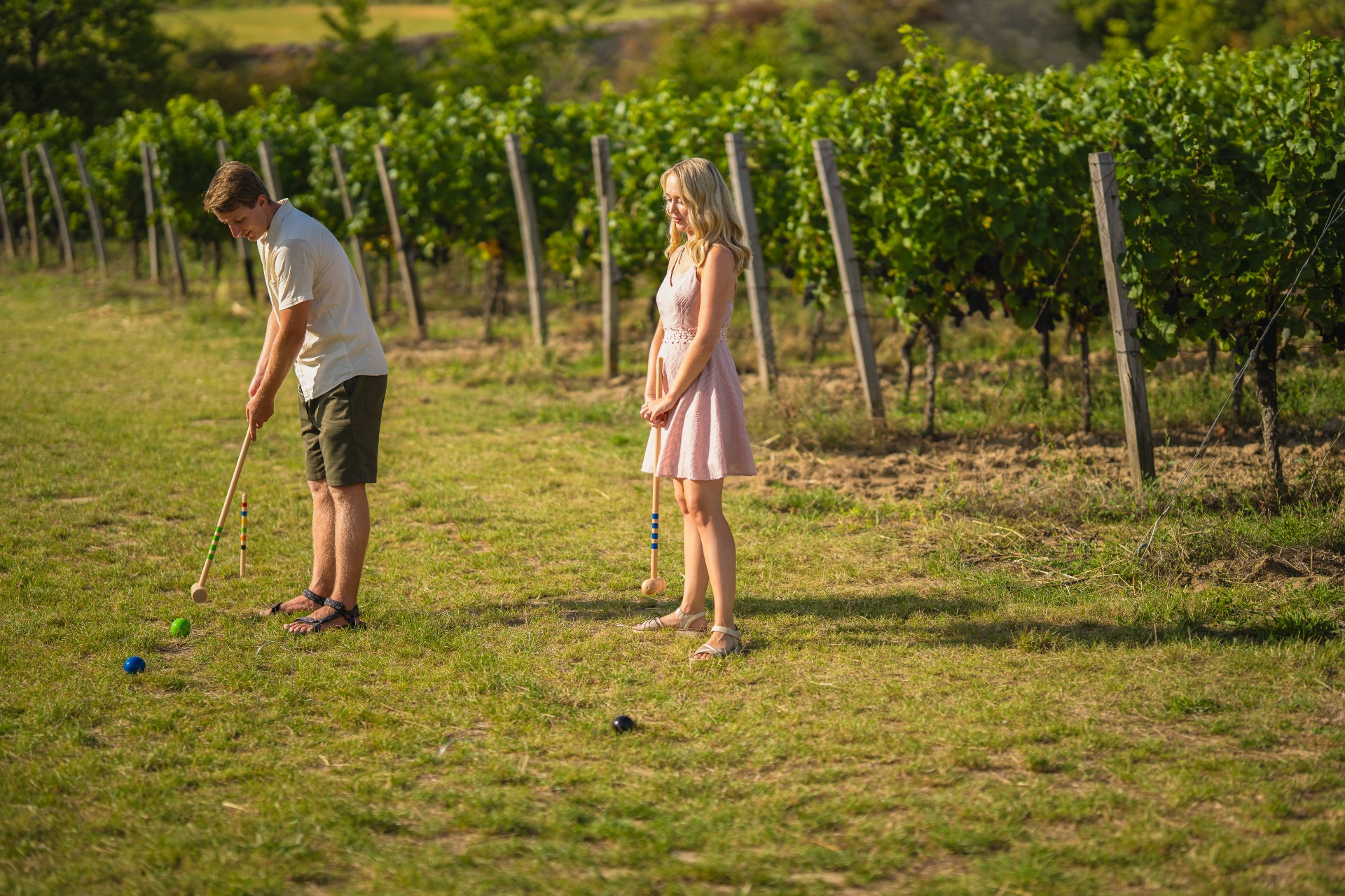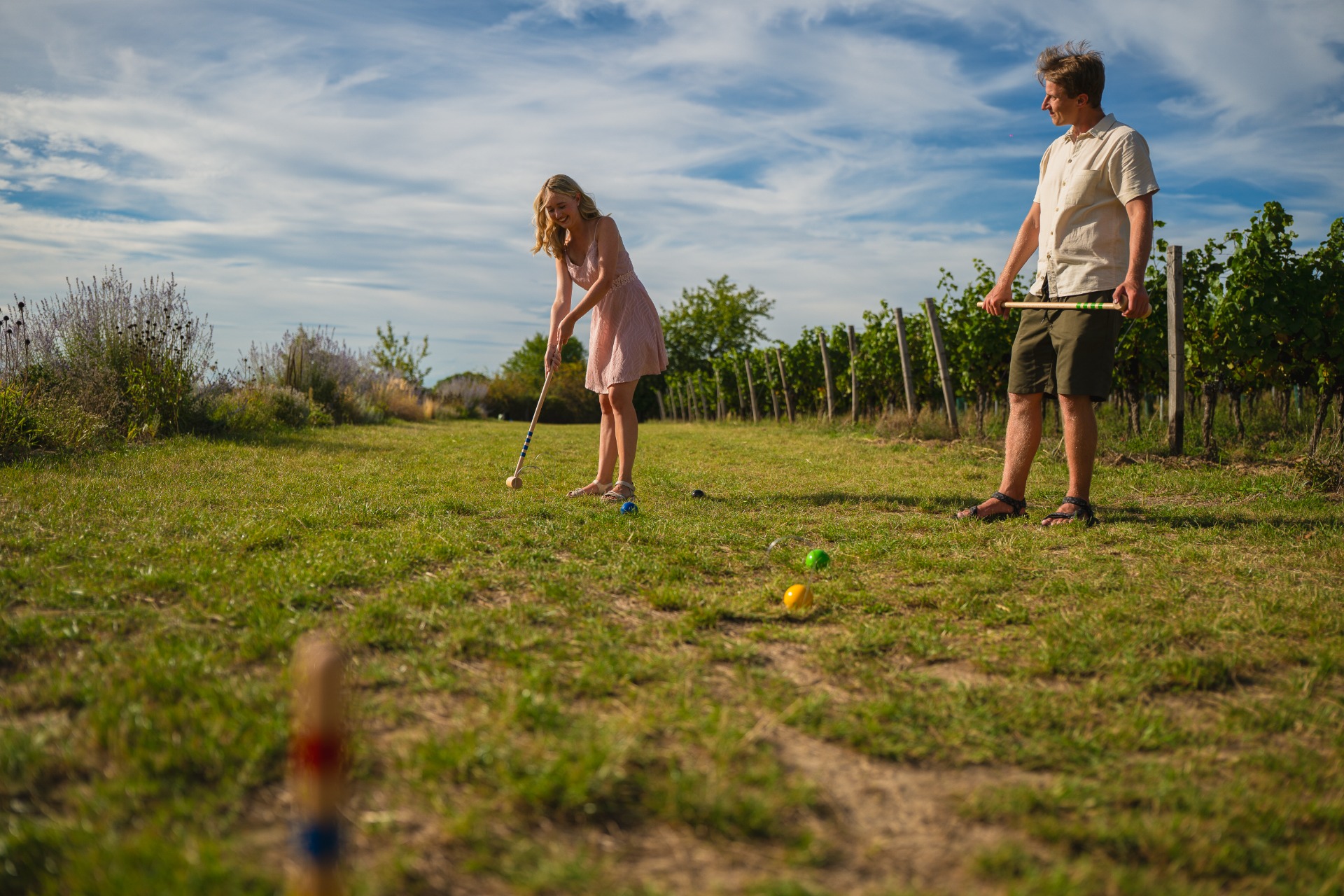 Kroket je přesně ta hra, která na zahradní oslavě zabaví každého, kdo si chce trochu zasoutěžit, ale zároveň si užít pohodu a smích s ostatními. Dřevěným kladívkem se snažíte trefit svou kouli skrz branky a dojít do cíle dřív než ostatní. Můžete být fér, nebo trochu škodolibí a jemně vystrčit soupeře z trasy, podle toho, jaká nálada zrovna panuje.