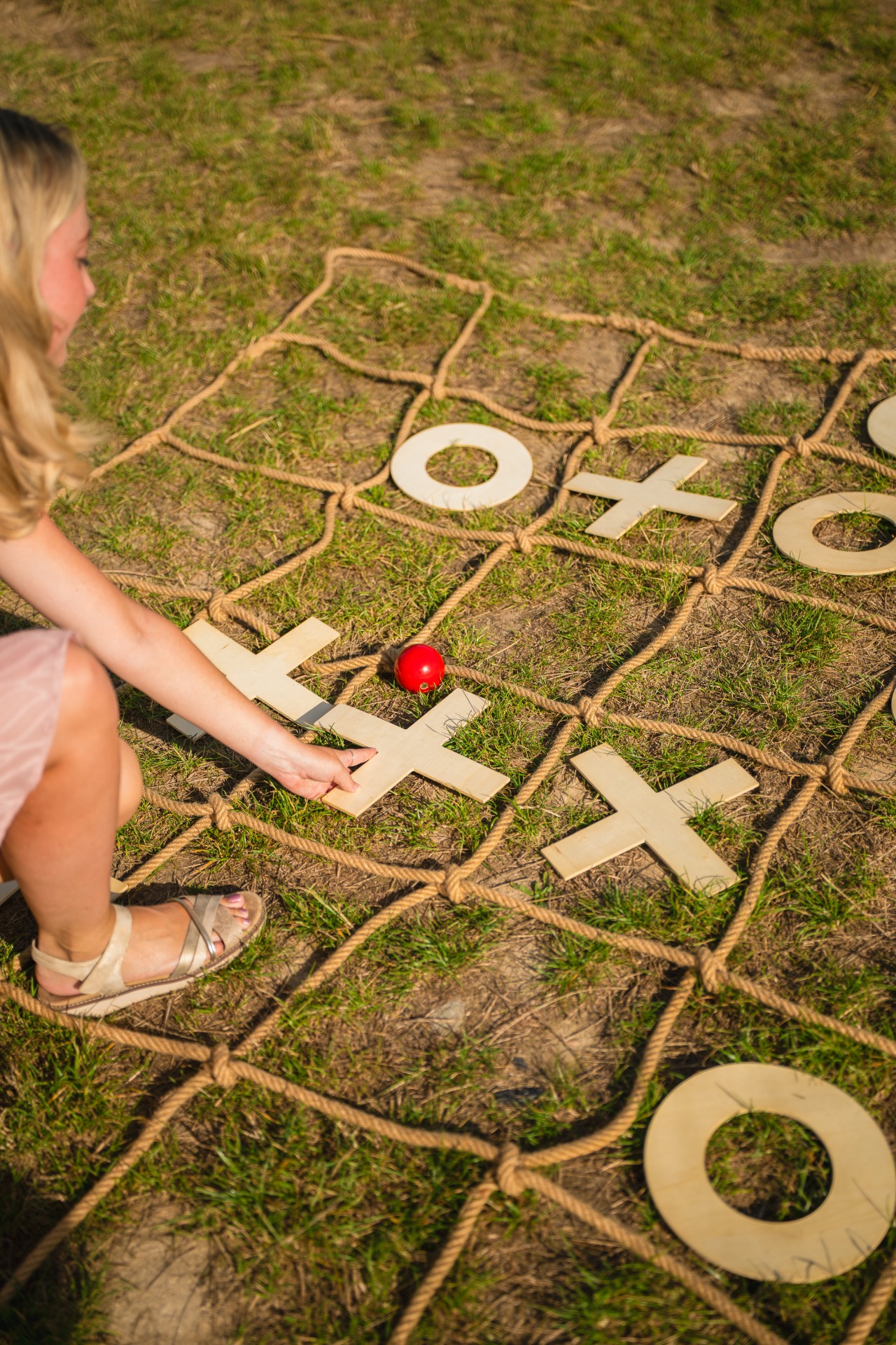Vzali jsme klasické piškvorky, přidali kroketové kladivo, míček a dávku venkovní zábavy. Výsledek? Hra, která přitáhne pozornost dětí i dospělých a postará se o smích i soutěživé napětí.